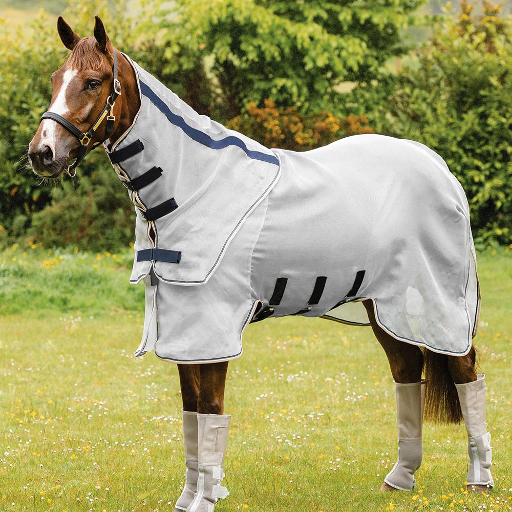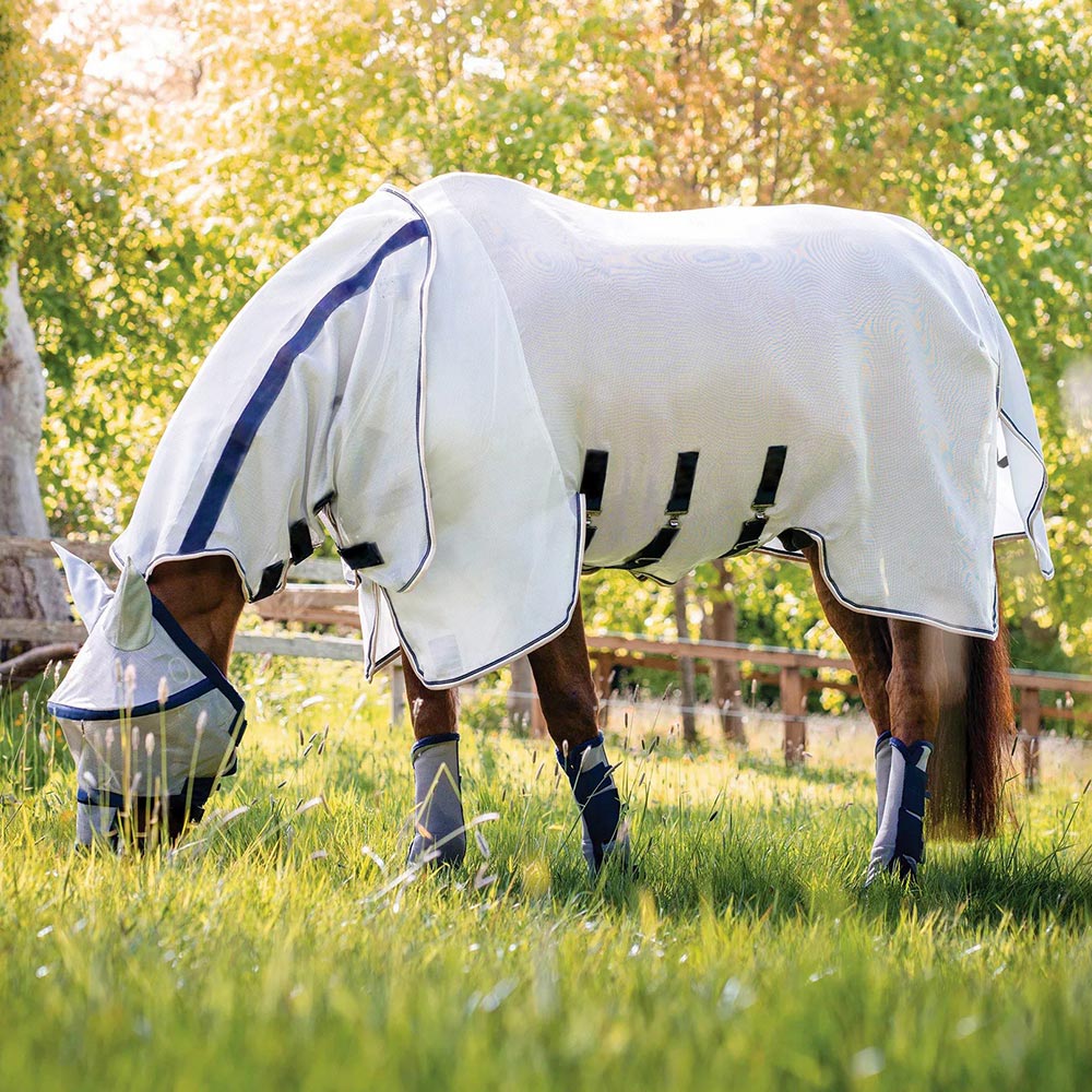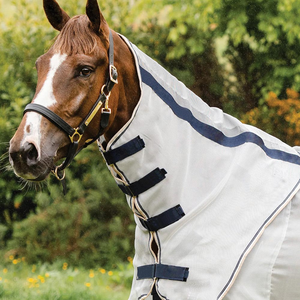Crafted from a durable 600D Polyester Ripstop outer, this breathable rug provides 90% UV protection while keeping insects at bay. The integrated hood offers full-coverage protection, while the silky polyester lining at the mane, shoulders, and tail flap helps minimize friction and bacterial growth.